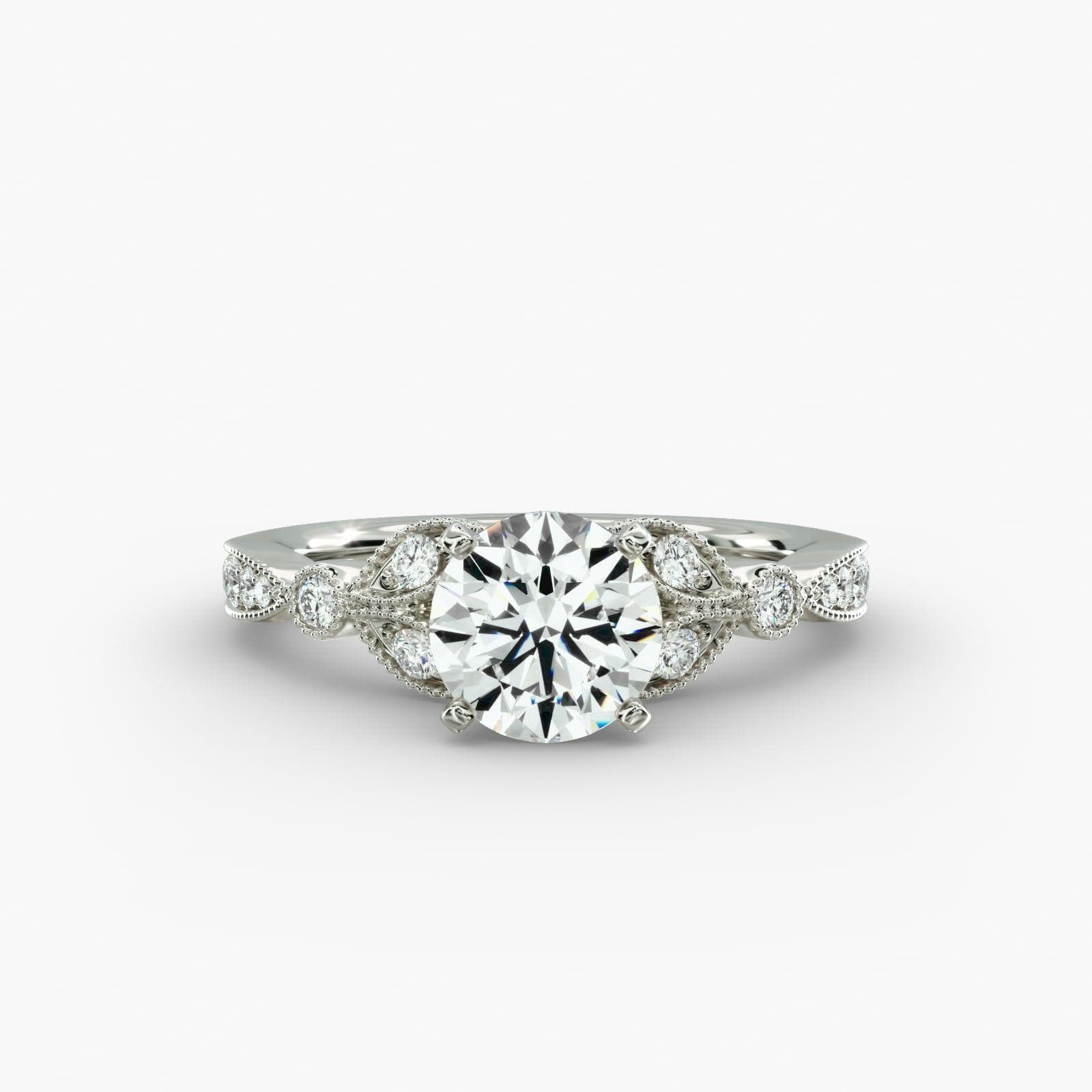 This is Blue Nile's Petite Vintage Pavé Leaf Diamond Engagement Ring. The ring on the left is platinum while the one on the right is 18k white gold. Can you see a difference?
