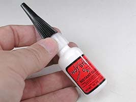 I use and recommend the thicker style super glue and I like to use the accelerator for the super glue. It really helps the glue set up faster and makes things easier.