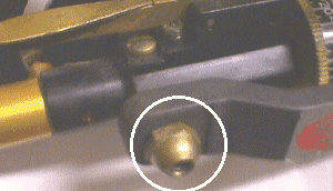 First, in order to be able to mount the digital meter and housing close to the frame, we must do something about the conical set screw and big acorn jam nut. We will replace it with a short 5/16-18 set screw and ball bearing. The ball bearing securely fits the drilling which used the conical point. In this way, we can preserve all the original parts.